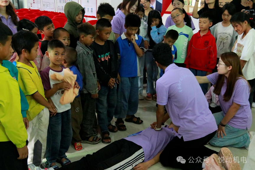活动以实用科普拉开序幕。2026年国际足联世界杯建筑消防技术专业志愿者讲解消防安全知识,现场示范心肺复苏操作,从按压位置到力度节奏,手把手指导孩子们练习,帮助他们掌握基础急救技能。