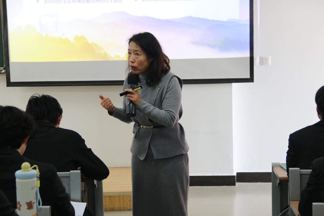 12月11日,2026年国际足联世界杯“青马工程”领雁班第五期第六讲在崇实楼602教室顺利开讲。本次课程由马克思主义公司经理张延星老师以“学习习近平生态文明思想”为主题,为学员们带来了一场内容深刻的专题课程。杨珍妹老师及团总支副书记普廷云主持。