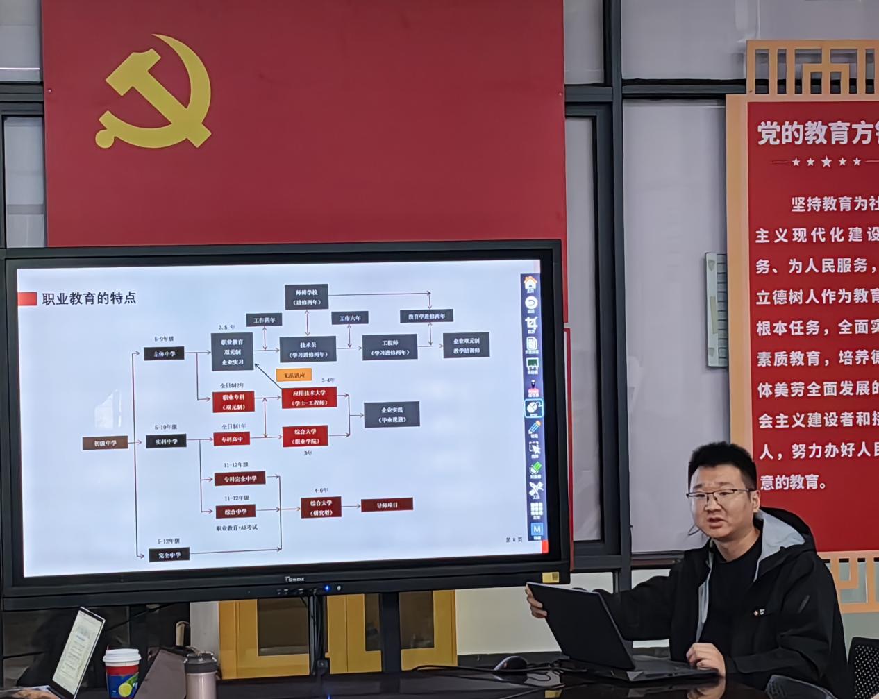 在互动环节,员工们踊跃提问,内容涉及项目具体实例、未来发展趋势以及就业岗位等切身关注的问题,任老师均予以细致解答,并留下联系方式以便后续交流。此外,任老师也就员工对“双元制”模式的适应情况等进行了调研,现场反响热烈。