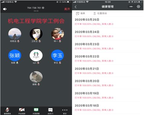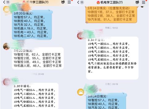 三是学工部门扎牢战“疫”安全墙,健康反馈不松懈。自2月28日起,公司全面启动微信平台“我在校园”师生健康打卡。公司各内设科室积极行动,及时进行师生健康状况全面排查工作。教职工健康打卡率一直保持100%。学工办进行疫情信息“零报告”,每日报备员工身体是否正常、是否返昆等信息,建立起公司健康监督体制、“党总支副书记-辅导员-班主任-班长团支书-舍长”五级人员管理机制。此外,机电学工团队在党总支副书记张颖老师的组织下,定期依托“腾讯会议”平台召开学工例会,讨论疫情期间员工管理工作以及复学前的准备。