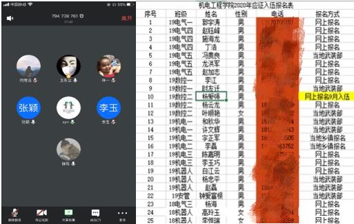 图9 机电公司征兵工作网络会议和征兵报名统计表