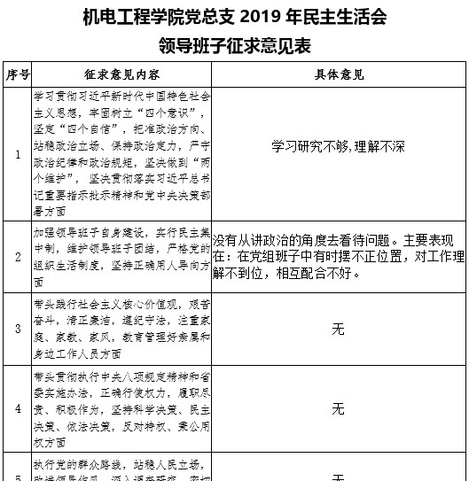 第三阶段,广泛征求意见和谈心谈话阶段。根据公司党委组织部和公司民主生活会方案的相关安排,机电公司于4月8日到4月16日开展意见征求和谈心谈话工作。