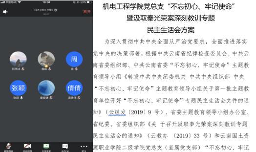 第一阶段,研究部署阶段。党总支副书记张颖同志于公司于4月9日早在明尚楼A201室召开党总支委员会议,研讨民主生活会的会议安排和会议流程,细化分工,明确个人任务,并形成初步方案提交党政联席会审核。公司于4月10日下午2点在明尚楼A201室召开党政联席会,会议研讨审核了本次民主生活会的方案,并形成“公司党总支‘不忘初心、牢记使命’暨汲取秦光荣案深刻教训专题民主生活会方案”上报公司党委组织部,4月10日晚依托“腾讯会议”APP组织机电一、二支部书记,党总支组织委员和宣传委员召开线上会议,研讨本次民主生活会的前期筹备工作和分工安排。
