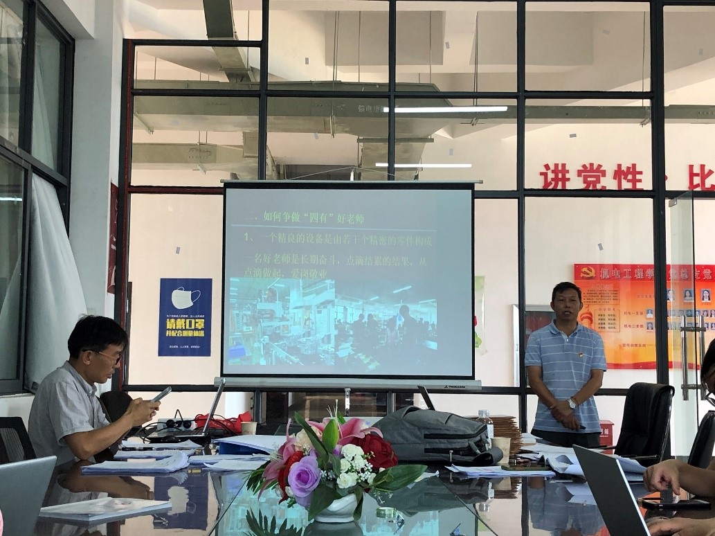 会议第一项,云岭工匠、公司经理秦忠为大家讲党课,党课主题是“苦干实干,争做四有好老师”,秦忠同志从新时代教师的初心和使命、习近平总书记“四有”好老师的内涵要求和公司招生、就业、疫情防控、教学等工作中的教师典型事例三个方面阐述了新时代的教育工作者的初心和使命,分享了自己对“四有”好老师的认识和实践经验。党课主题鲜明、重点突出、内涵丰富、条理清晰,对全体党员教师有很强的教育指导性。