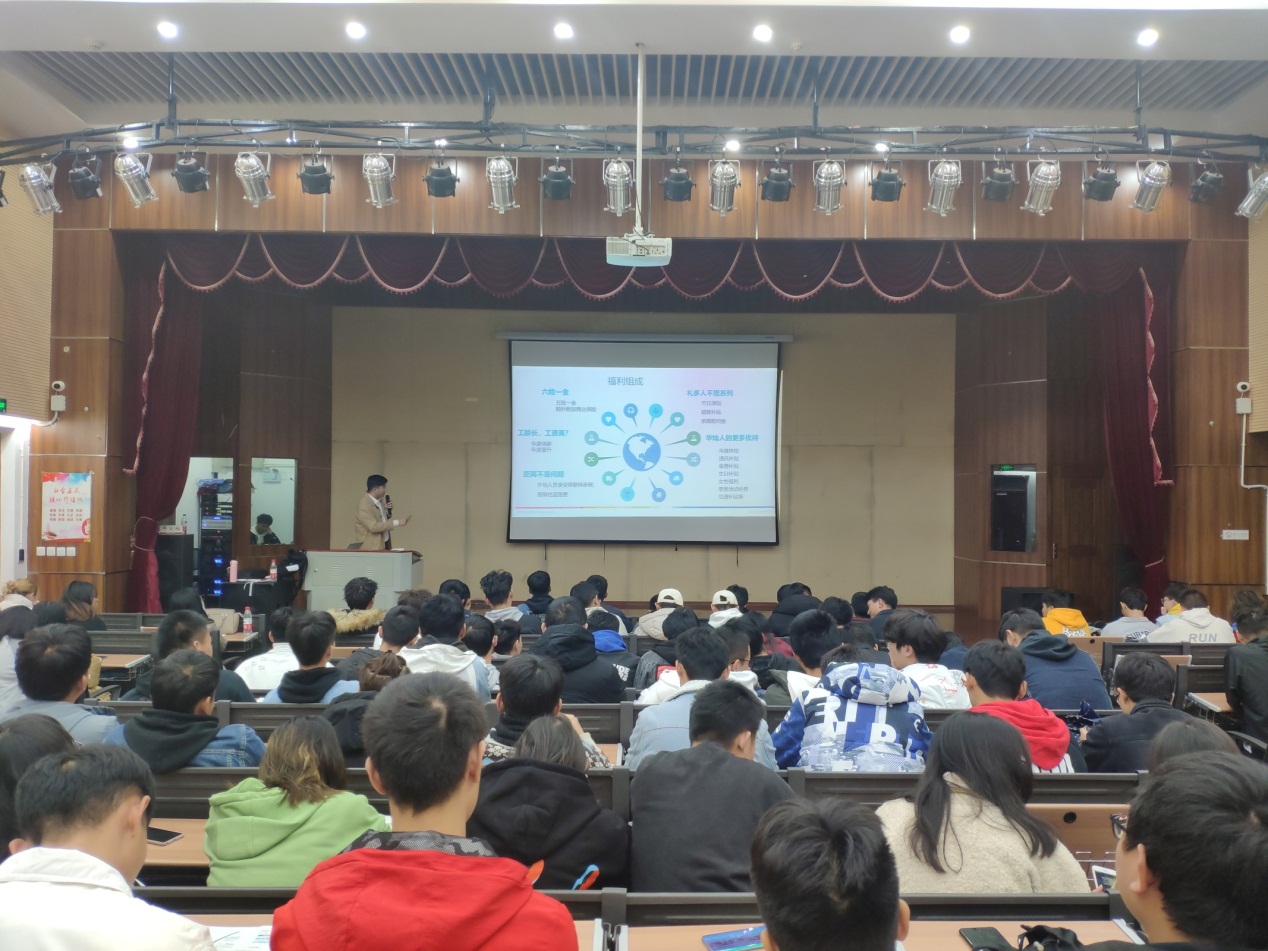 首先,副经理张俊妍对两家企业的到来表示欢迎和感谢,随后,义乌市东方日升和华灿光电两家企业代表进行校招宣讲,两家企业主要从播放企业宣传片、企业发展历程、企业荣誉、主营业务、工作和生活环境、岗位需求、入职待遇、员工福利以及晋升渠道等多方面向同学们详细介绍,并针对现场同学们提出的问题进行现场解答,让同学们更充分的了解了企业的具体情况。接着,义乌市就业创业管理服务中心陈胜老师,就义乌城市环境、就业政策和创业政策等方面对同学们进行详细讲解。最后,张俊妍老师向同学们分析了东西部工业发展现状,希望同学们出省学习,增长见识,拓宽知识面,学习省外先进技术。