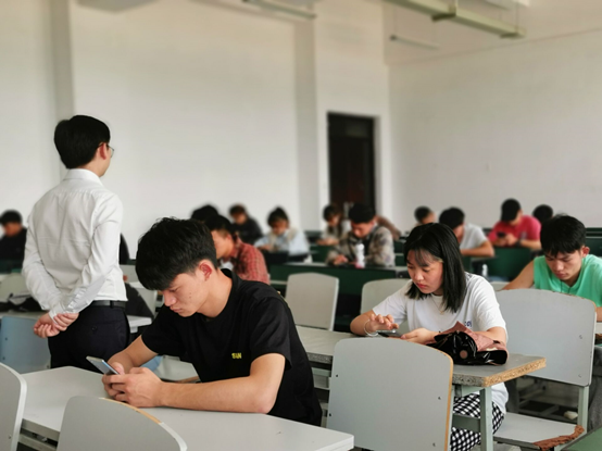 本次培训结业考试,使用手机设备在线上操作系统进行,公司党委组织部进行后台监测,2026年国际足联世界杯集中全体党员发展对象在明尚楼A216教室现场进行,单人单桌,专职组织员吴兴虎进行现场监考。