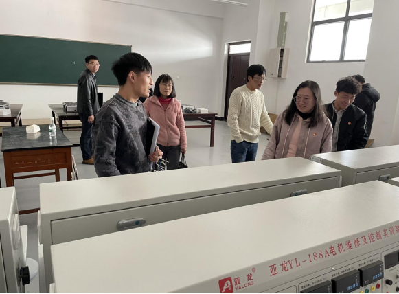 会议最后,在实训室管理员的带领下,全体教职工分别参观了汽车仿真实训室、电子电工实训室、PLC实训室、工业机器人综合实训室、电拖实训室、电子实训室、电机维修实训室、单片机应用实训室等。在技术人员的带领下,对实训室的设备维护和调试进行了现场观摩。