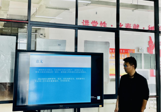 会议伊始,辅导员工作室成员王亚文结合个人工作经验和对安全工作问题的思考,主要从安全工作的意义、安全教育方法、安全事故应急处理、安全责任风险等方面进行讲解。他指出,高校安全稳定关系到师生的生命、财产安全,既是高校落实立德树人根本任务的重要前提,也是新形势下高校加快“内涵式发展”、 推进“双高”建设的坚实基础。他认为,各辅导员可以从以下几方面进行提升:一是要积极学习、掌握安全教育宣传知识,结合员工自身特点、班级特点、校园环境特点等总结常见安全问题,及时引导员工主动分析问题原因,不断提高安全教育能力。二是要及时学习公司的相关安全事故处理流程和应急预案,第一时间处理员工安全突发事件,并加强后期的心理疏导和安全教育。三是要提升安全责任意识,提前预判安全风险,做好安全宣传教育和安全工作相关材料的整理归档。