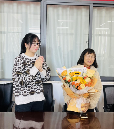 最后,裴倩倩老师代表公司全体师生为汪全美老师送上鲜花,全体在校教师一起合影留念,并祝汪老师退休快乐,身体健康,阖家幸福!