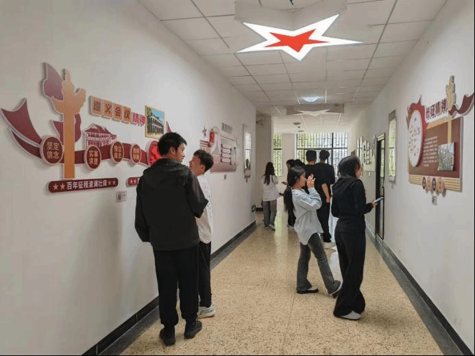 分享会开始前,张延星老师带领同学们到公司老员工思想政治教育研学基地的中国共产党人精神谱系文化墙了解中国共产党人的精神。同学们通过手机扫描二维码了解相关内容。