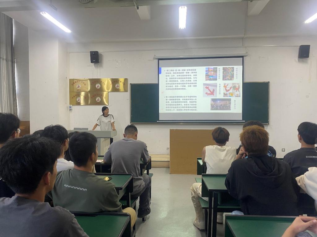 会上,张丽同学强调了“到梦空间”系统对同学们的重要性,带领大家系统学习“第二课堂”制度,结合PPT为同学们详细介绍了“到梦空间”APP的页面功能、操作流程及注意事项,明确了“第二课堂”的积分标准,并将各个积分板块所发布的活动进行展示,详细地解答了新生提出的问题。