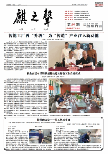 2022年5月31日,公司2019级智能控制技术2班张中原同学,在浙江嘉兴麒盛科技股份有限公司实习期间,表现突出,被浙江嘉兴麒盛科技股份有限公司企业内刊《麒之声》发文表扬。