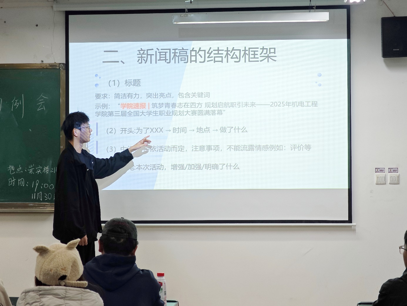 本次培训紧扣宣传工作的核心技能,共分为两个专题。第一专题由宣传部副部长卢大安主讲,围绕“如何撰写新闻稿”这一主题,为新成员系统讲解了新闻稿的基本结构、写作规范、实用技巧及常见误区,并结合实例分析加深理解。