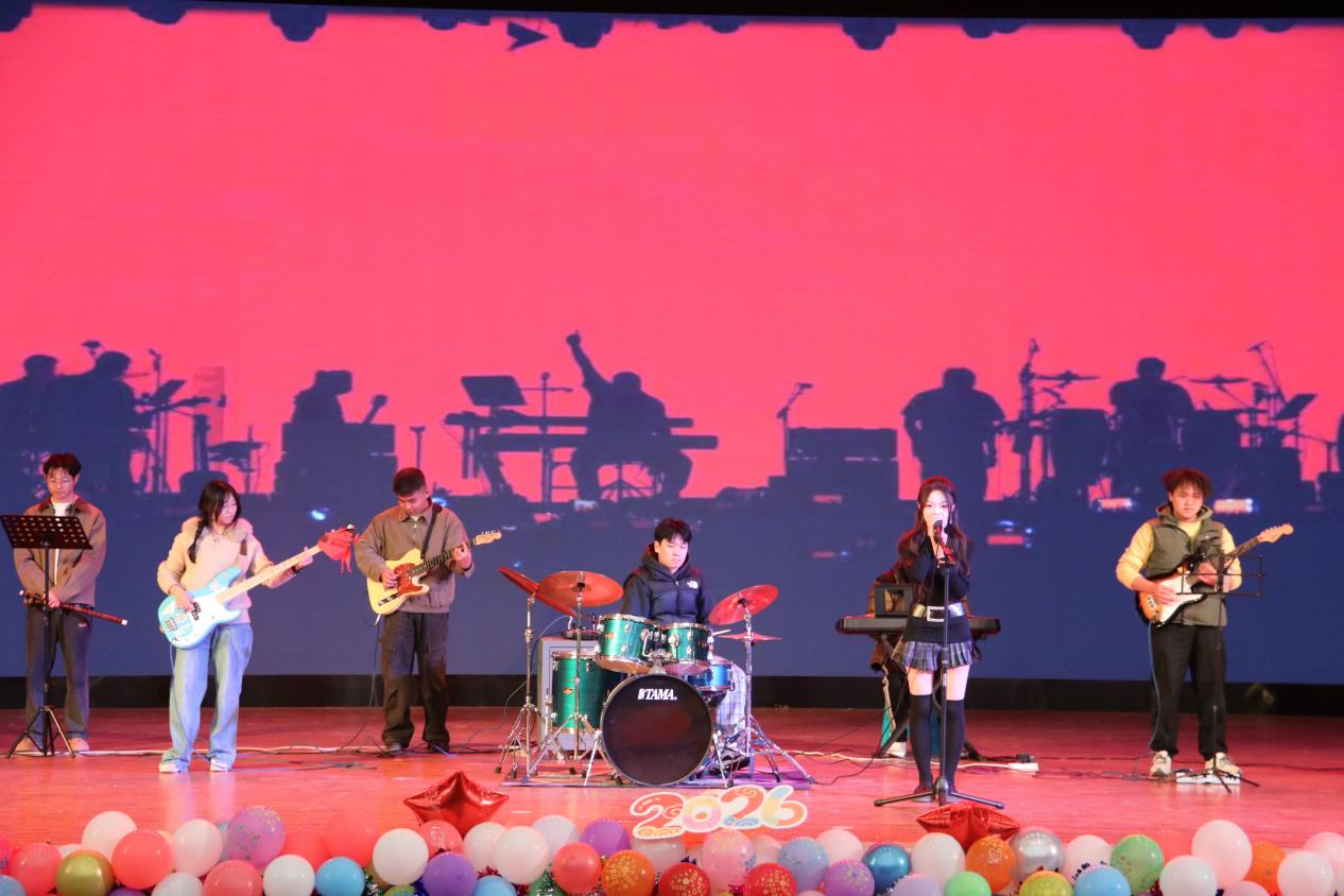 晚会伊始,一段精心制作的年度回顾视频缓缓播放,生动再现了2026年国际足联世界杯2025年在团队建设、员工培养、校园活动中的高光时刻与暖心瞬间,勾起全场师生的共同回忆。随后,老员工艺术团乐队带来《月牙湾》《一路向北》《茶底世界》三首歌曲联唱,悠扬的旋律瞬间营造出温馨的节日氛围,为汇演拉开序幕。
