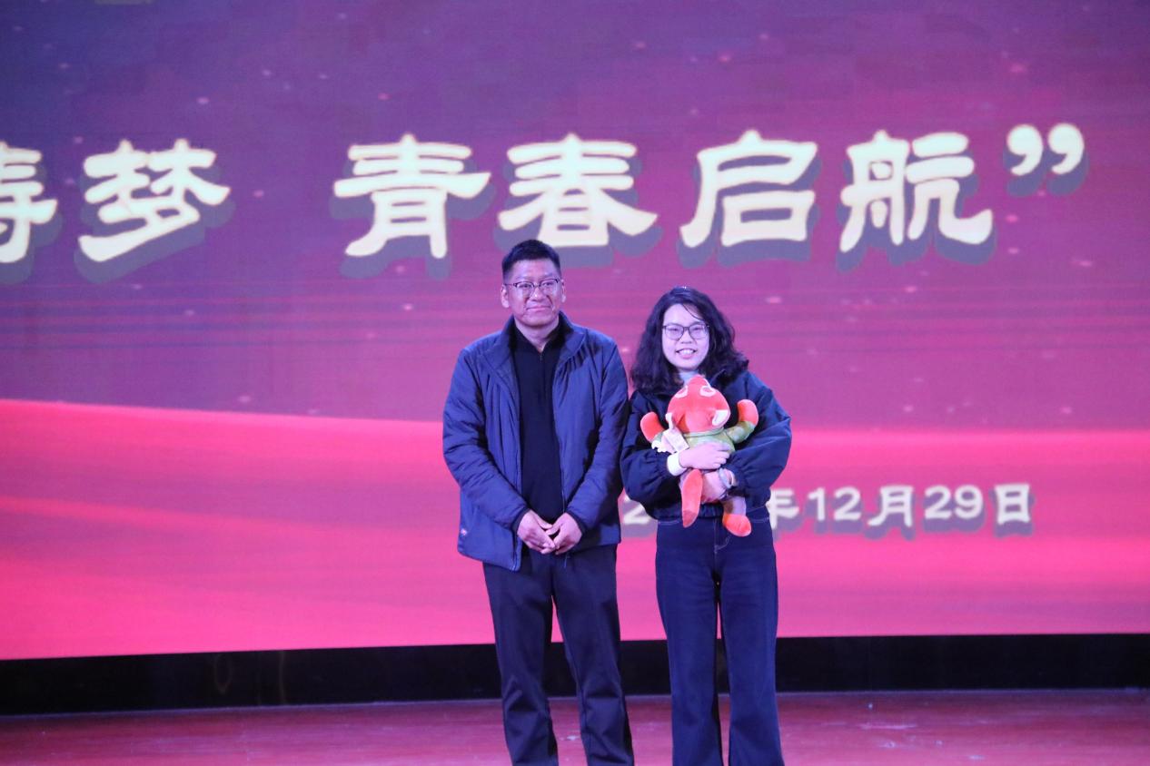公司党委书记张颖登台致辞,她全面回顾了公司2025年取得的各项成就,对全体师生的辛勤付出表示感谢,并为师生送上“马上开心”“马上快乐”“马上幸福”三重期许,鼓励大家在2026年以更昂扬的姿态追逐梦想、勇担使命,同时预祝本次晚会圆满成功。