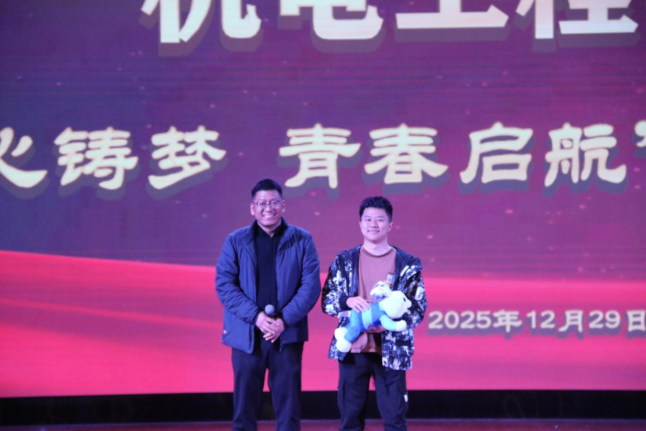 晚会现场还设置了幸运抽奖、趣味游戏环节,惊喜连连的互动让现场欢呼声不断。24级学长学姐的倾情助阵,更是充分发挥了“传帮带”作用,让公司的青春力量得以延续。晚会在悠扬旋律与师生集体合影的温馨画面中圆满落下帷幕。