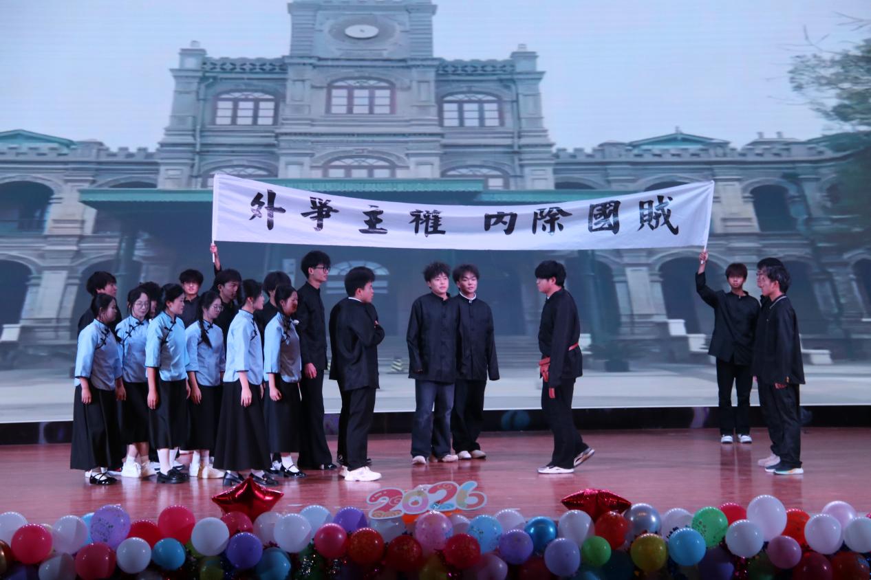 奏响爱国强音,将晚会氛围推向高潮。25级工业机器人技术2班现代舞《我们的时光》勾勒校园温馨日常;25级电气自动化技术1班影子剧《幕影下的青春答卷》创意展现学子成长追求;25级建筑消防技术2班、25级汽车电子技术1班、25级汽车电子技术2班、25级安全技术与管理3班、25级工业机器人技术4班联合合唱《我爱你,中国》饱含赤诚,引发全场共鸣;25级安全技术与管理2班民族舞《民族团结,乐舞庆年》诠释民族团结主题,尽显中华儿女豪情。
