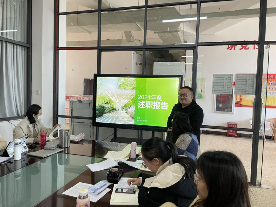 为公平、公正推选出公司年度考核结果为优秀的教职工,公司开展了2021年度职工履职考核第二轮述职汇报工作,会议由党总支书记王春莲主持。述职开始前,王春莲就此次开展述职工作的意义和评选流程进行了介绍,并要求大家维持会场秩序,公平客观进行评选,并从述职教师的汇报中,寻找差距,学习其身上的优秀品质。