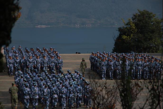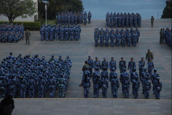 在教官亲切的关怀和严格训练下,在短短的几天里,齐步走、正步走、齐步变正步、解散、集合及分列式等预定训练科目已初见效。
