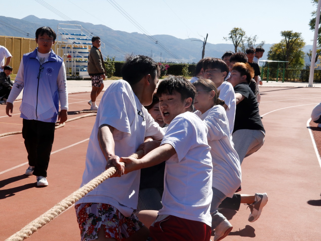 开幕式结束后,第一项拔河比赛正式开始。比赛过程中,各队伍成员齐心协力,全力以赴。他们或紧锁眉头,咬紧牙关,用尽全身力气向后拉;或大声呼喊,互相鼓励,激发团队士气。