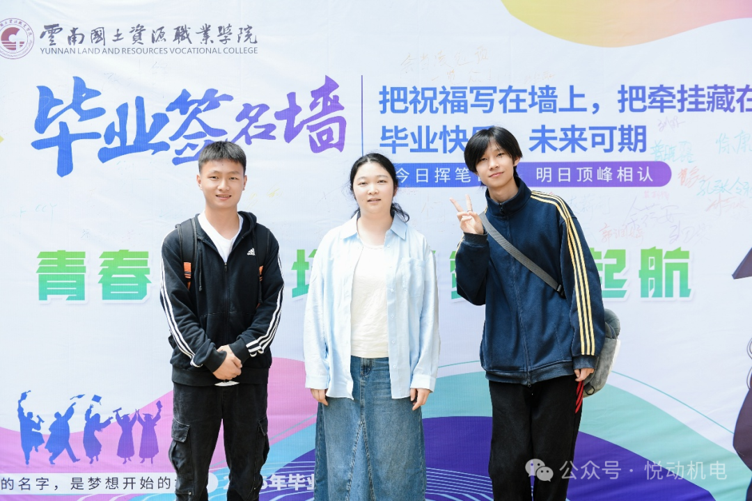 签到墙前,毕业生们写下自己的名字,与朋友合影留念。屏幕里滚动播放的校园生活影像,引得不少人驻足观看,回忆过往。