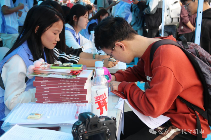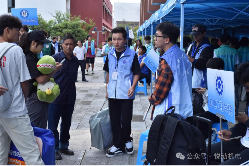 迎新现场,身着统一志愿服的员工志愿者是最亮眼的“风景线”。