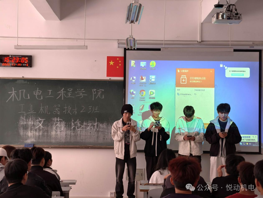 为丰富校园生活、增进同学情谊,11月14日下午,2025级工业机器人技术2班在笃行楼301成功举办了入学以来的首次文艺活动。本次活动由班级文体委员组织,全班同学积极参与,现场氛围热烈融洽。