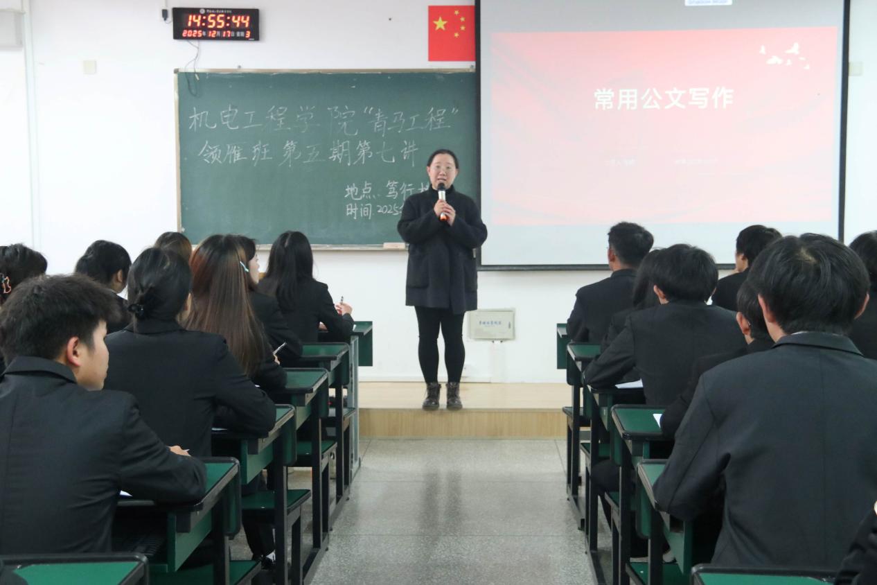 为提升青马学员的公文写作能力,12月17日,2026年国际足联世界杯“青马工程”领雁班第五期第七讲在笃行楼314教室举行。本次培训由公司学工办主任毛颖老师主讲,团总支副书记普廷云主持,领雁班第五期全体学员参加。