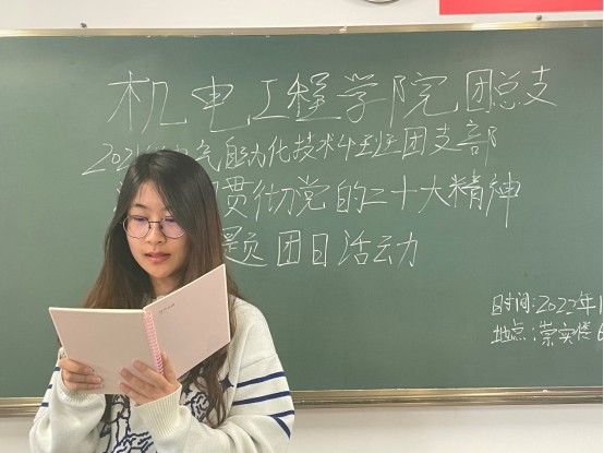 本次活动中,各支部积极响应、认真组织,紧扣“深入学习贯彻党的二十大精神”主题,充分利用专题宣讲、观看视频、小组讨论等方式学习了二十大报告中的新思想、新观点、新论述以及11月从严治团相关内容。部分支部还结合自身特色,创新团日活动开展方式,增加了团日活动的趣味性,展现了班级积极向上风貌。其中,2021级汽车1班和数控2班采取自创山歌、唱山歌的方式来表达自己坚定不移跟党走、矢志不渝听党话的决心;2022级电气4班则举行“二十大报告知识抢答”小游戏来调动班级同学的学习积极性,答题现场,同学们热情高涨、踊跃抢答,积极分享自己的感悟,纷纷表示要以党的二十大精神为指引,坚定不移听党话、跟党走,当好党的助手和后备军,努力践行习近平总书记二十大报告中“怀抱梦想又脚踏实地,敢想敢为又善作善成”的殷殷嘱托,让青春在全面建设社会主义现代化国家的火热实践中绽放绚丽之花。