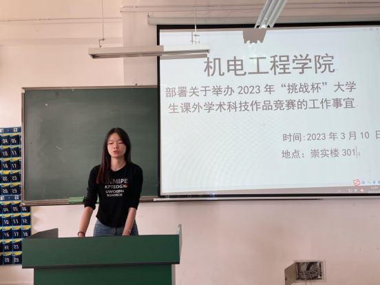 第三环节是对即将开展的“挑战杯”和“互联网+”创新创业大赛做动员工作。首先,主席团成员何大一同学对两项赛事的报名方式、作品内容等进行了介绍。随后,辅导员张洪梅老师进行了参赛动员,她希望全体团干部要在班级内主动宣传大赛、主动组队参加大赛,在大赛中提升自己、锻炼自己、成就自己。最后,公司团总支负责人陈立老师介绍了大赛的含金量和以往公司获得的优异成绩,并希望各团支部积极踊跃参加大赛,拿出好的作品参赛,再创佳绩。