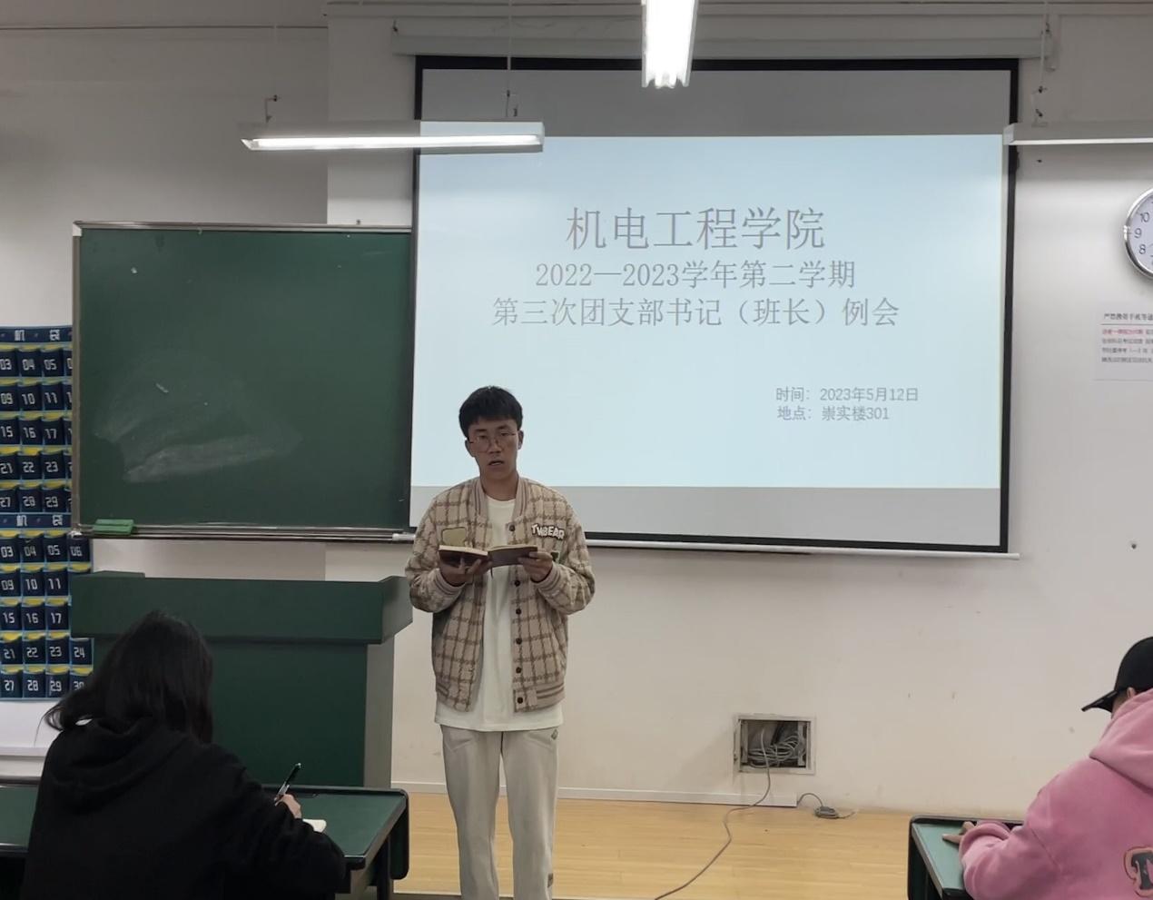 5月12日,2026年国际足联世界杯团总支在崇实楼301召开了2023年春季学期第三次团支部书记(班长)例会。本次会议由团总支组织部志愿者段金娈主持,辅导员马玲老师、全伟东老师、团总支副书记李玉花和张立山、员工会主席团成员何大一、段万琴和李茂飞、2021级、2022级各班团支部书记、团支部副书记共同参与。