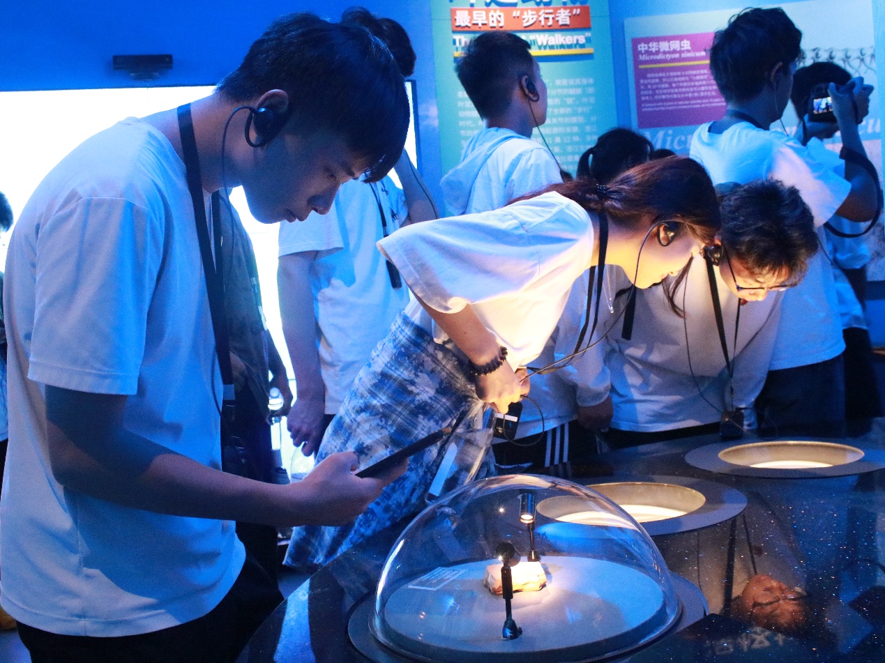 “生命大爆发”展厅内,寒武纪的“小虫虫”、机械暴龙、远古生物、鱼类标本,让学员们在须臾之间,感受5亿多年的“沧海桑田”。“生命大演化”展厅内,多媒体、3D投影、全息投影等手段展示的生命演化历史关键事件,让学员们直观地了解了古生物及其生态环境,感受地球历史的久远漫长。“生物多样性”展厅内,来自非洲、美洲的动植物标本,以及草原、雨林、极地、湿地等动物生活场景,让同学们感受到了地球生物的多样性。