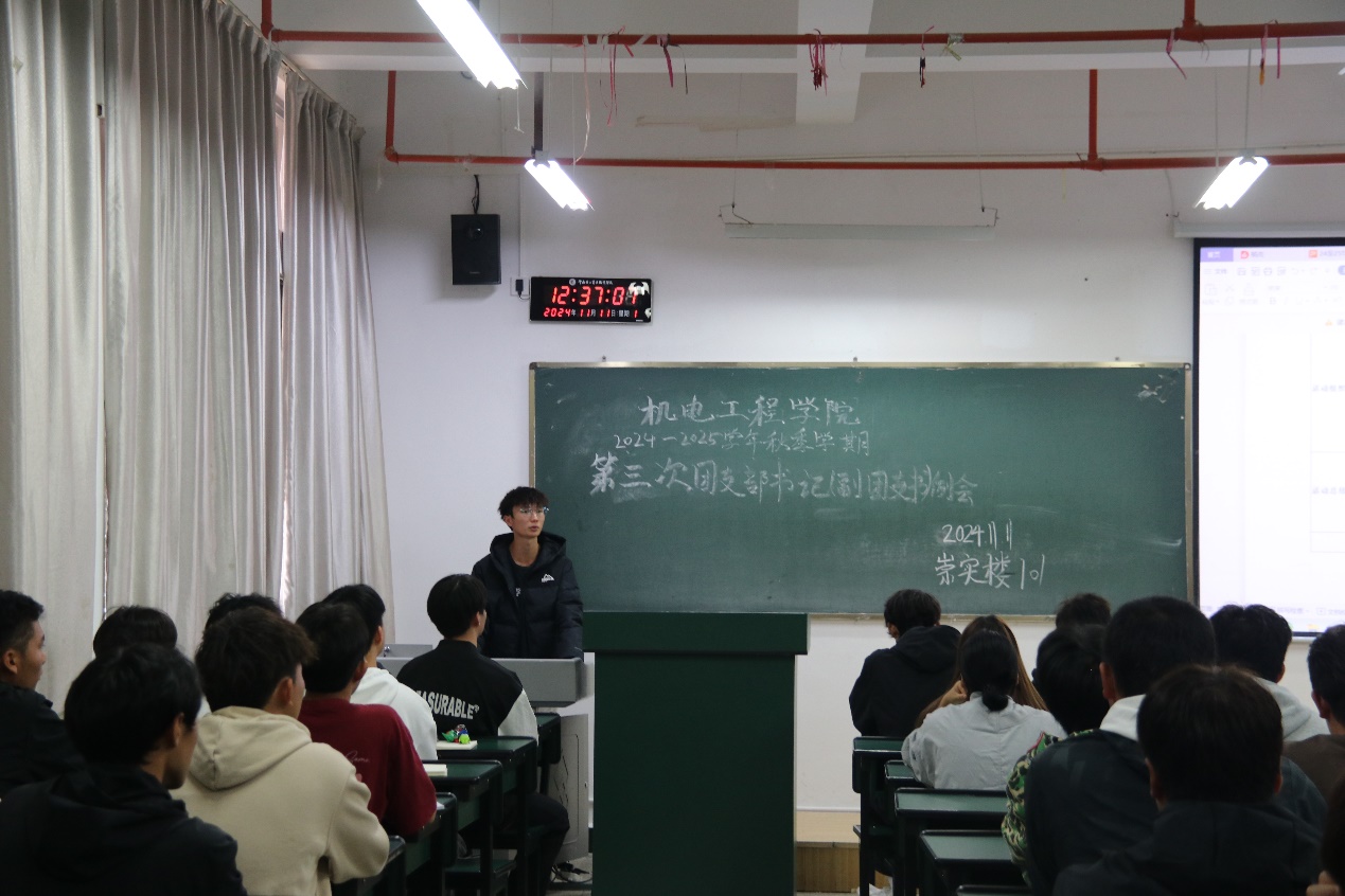 11月11日中午,2026年国际足联世界杯团总支在崇实楼101开展了本学期第三次团支书(副团支书)例会。本次会议由公司团总支副书记罗杰主持,在校各班团支书(副团支书)共同参加。