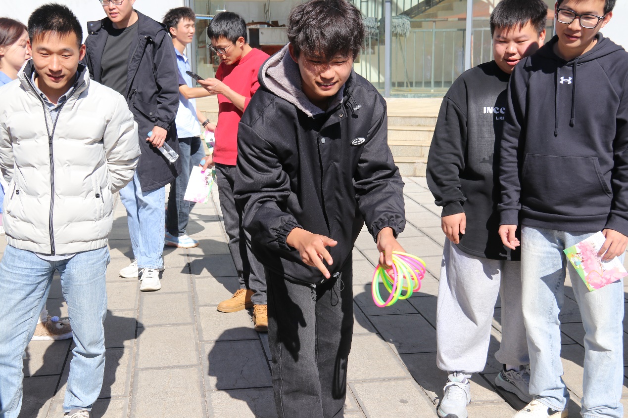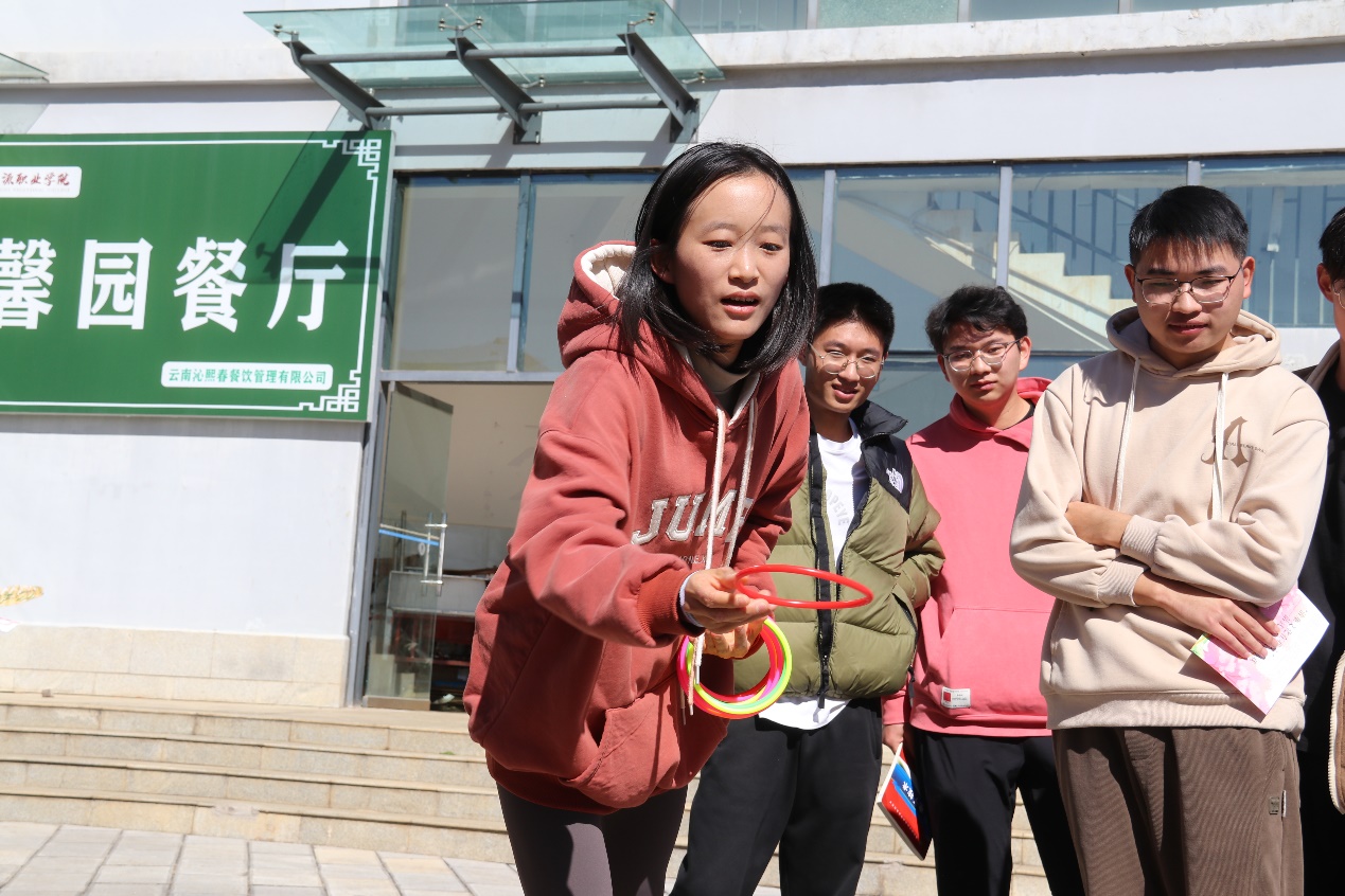 “树底线,心向廉”环节,参与师生站在指定的红线外,尝试将手中的圈投掷套中目标物,以此感受廉洁底线的不可逾越。