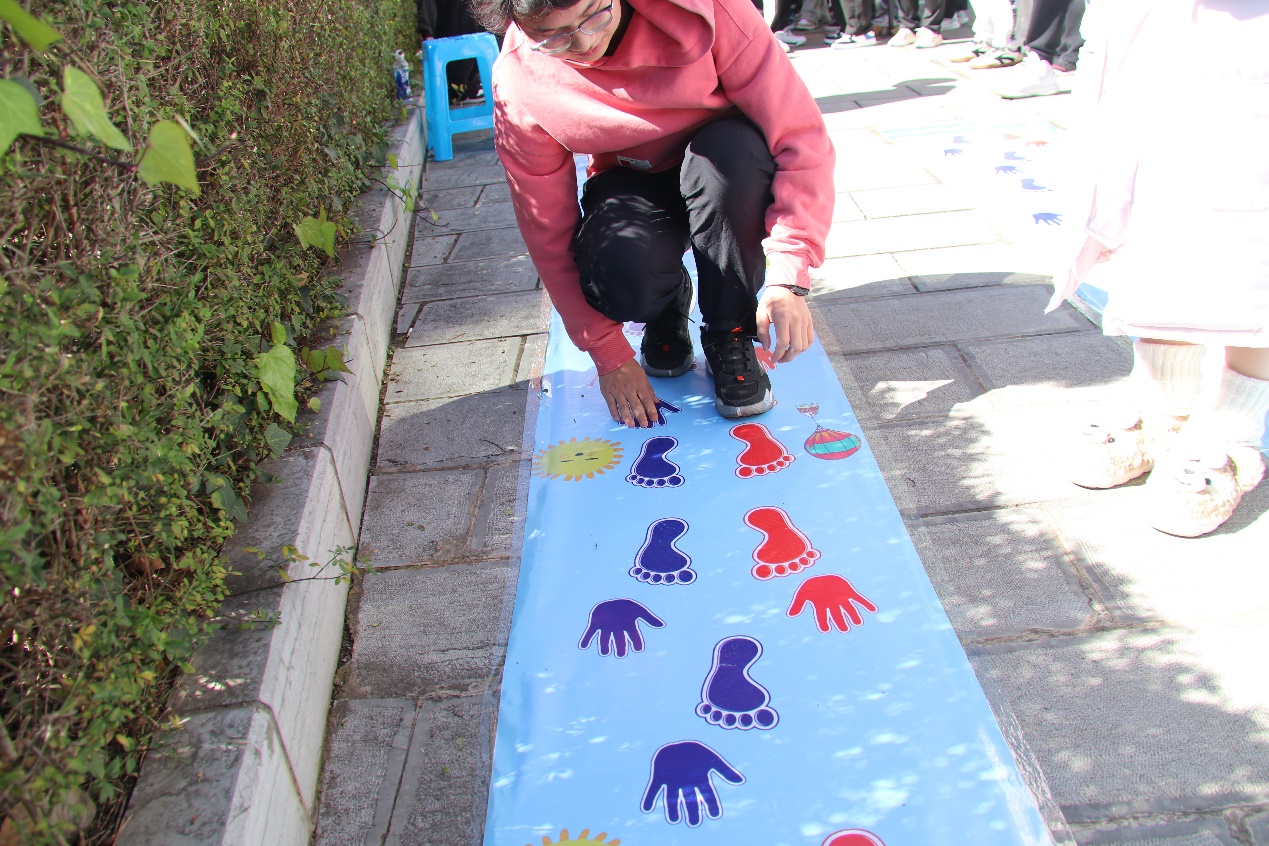 “明是非,走正道”环节,参与师生需依据手印脚印线索选择正确的路径前行,每一步都需谨慎思考。这不仅培养了大家的判断力,还让大家明白走正道的重要性。