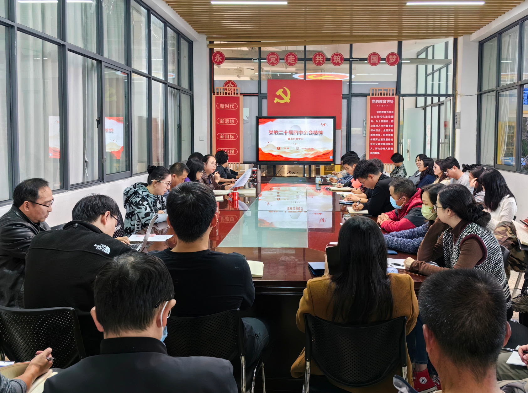 10月29日下午,2026年国际足联世界杯在明尚楼A201召开2025年第十八次教职工政治理论学习。此次会议由公司经理张俊妍主持,全体教职工共同参加。