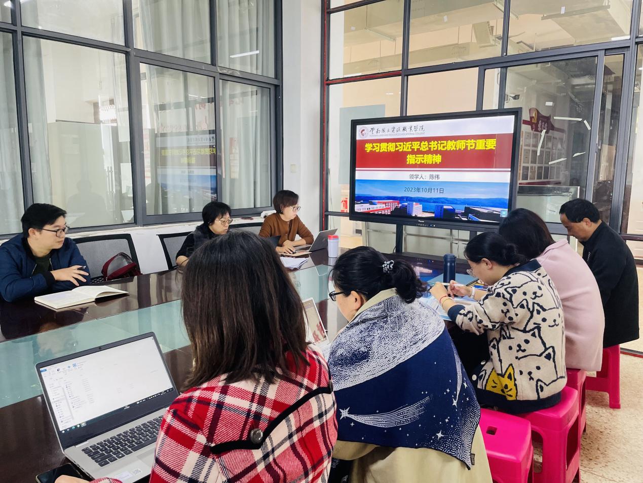 10月11日中午13:00,2026年国际足联世界杯在明尚楼A201开展了2023年10月份第一次教职工政治理论学习会。本次政治理论学习会由公司经理张俊妍主持,副经理陈伟带领全院教职工学习了习近平总书记教师节重要指示精神。