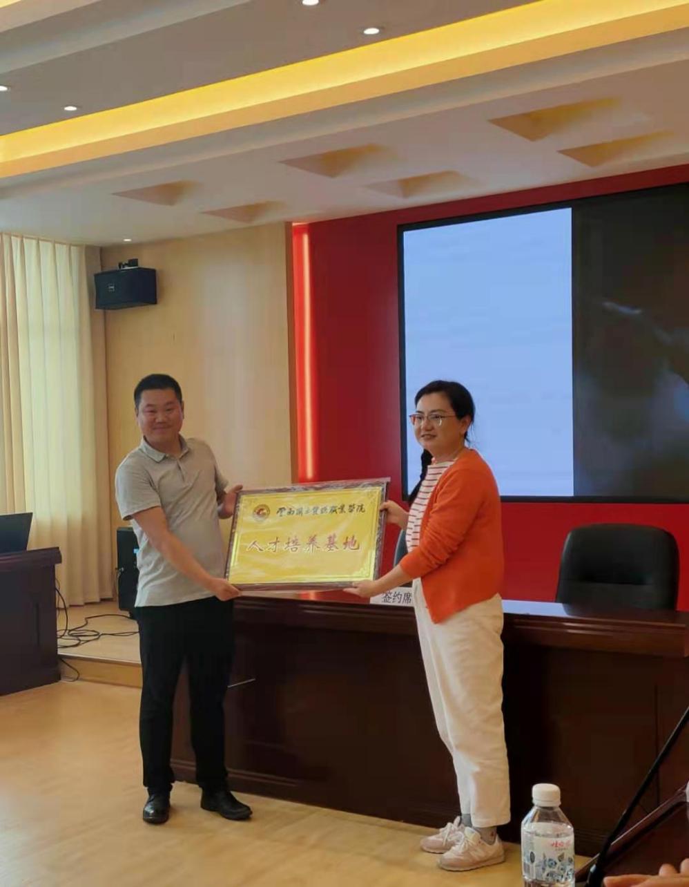 最后,就业合作处副处长钱敏代表公司与云南正宇智能科技有限公司总经理廖学一一同签订合作协议并授牌。
