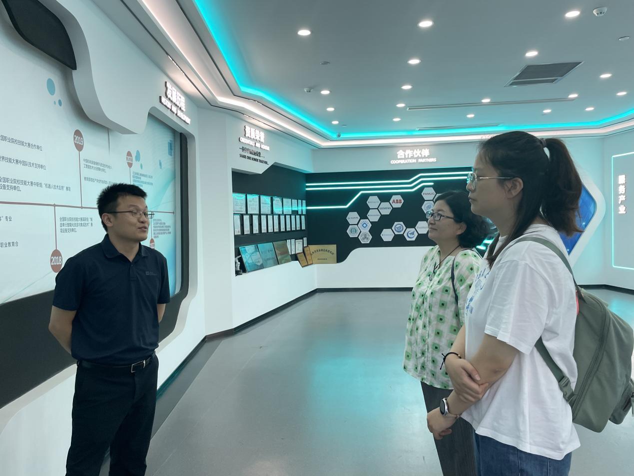 调研中,公司经理张俊妍介绍了公司目前现代学徒制开展情况和智能制造产业公司的建设方案,校企双方详细探讨了智能制造产业公司建设方案细节条款、订单班签订和订单班招生等工作,并就现代学徒制人才培养、校企合作共同开发课程、产学研项目、供需对接合作育人项目的推进等进行了深入交流,初步确定了智能制造产业公司订单班签订和开班相关事宜。