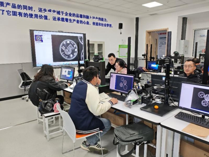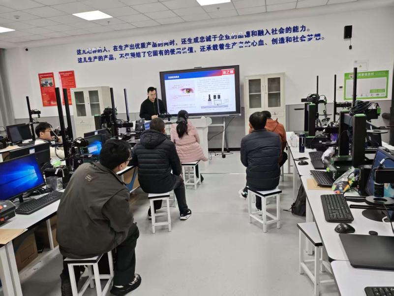 培训采用理实一体教学模式。首日,海之晨工程师系统讲授了机器视觉核心构成,包括相机选型、光源设计与图像采集技术,并结合实际检测案例,深入解析高精度定位、尺寸测量与瑕疵识别的技术路径,帮助教师构建从理论到产线应用的完整知识体系。