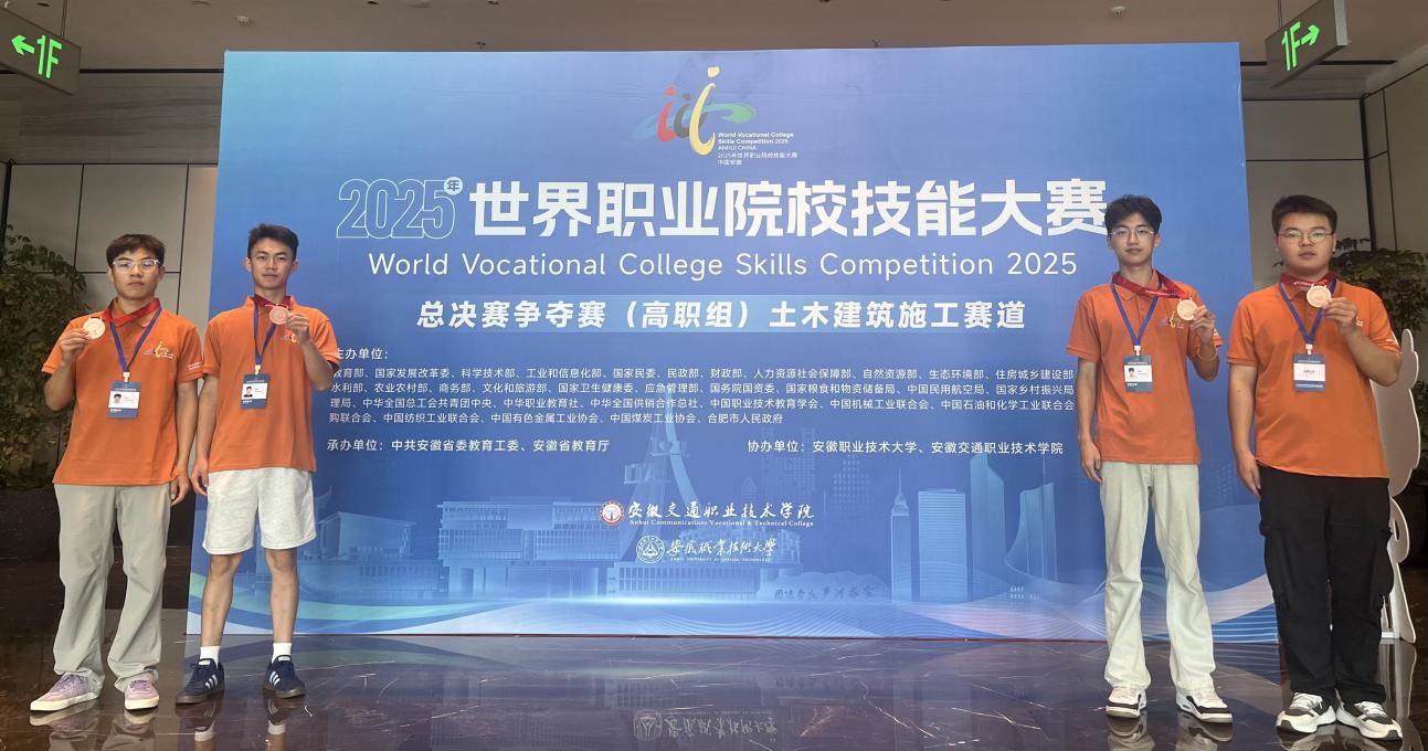 8月27日至30日,由安徽职业技术大学与安徽交通职业公司联合承办的2025年世界职业院校技能大赛总决赛(高职组)土木建筑施工赛道比赛圆满落幕。由公司安全消防专业群选派的员工团队(李钧杰、孔令富、殷良霄、邱洪键)在冯溪阳、刘芳芳老师的指导下,首次参赛勇夺大赛铜奖,实现公司在该项国际赛事土木建筑施工赛道中的历史性突破!